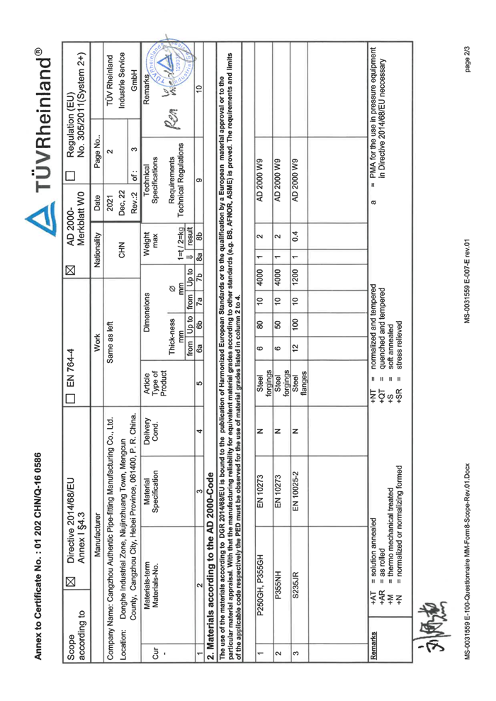 We also have ISO, PED and API certificates to make sure our quality, our goods is sold to Europe,